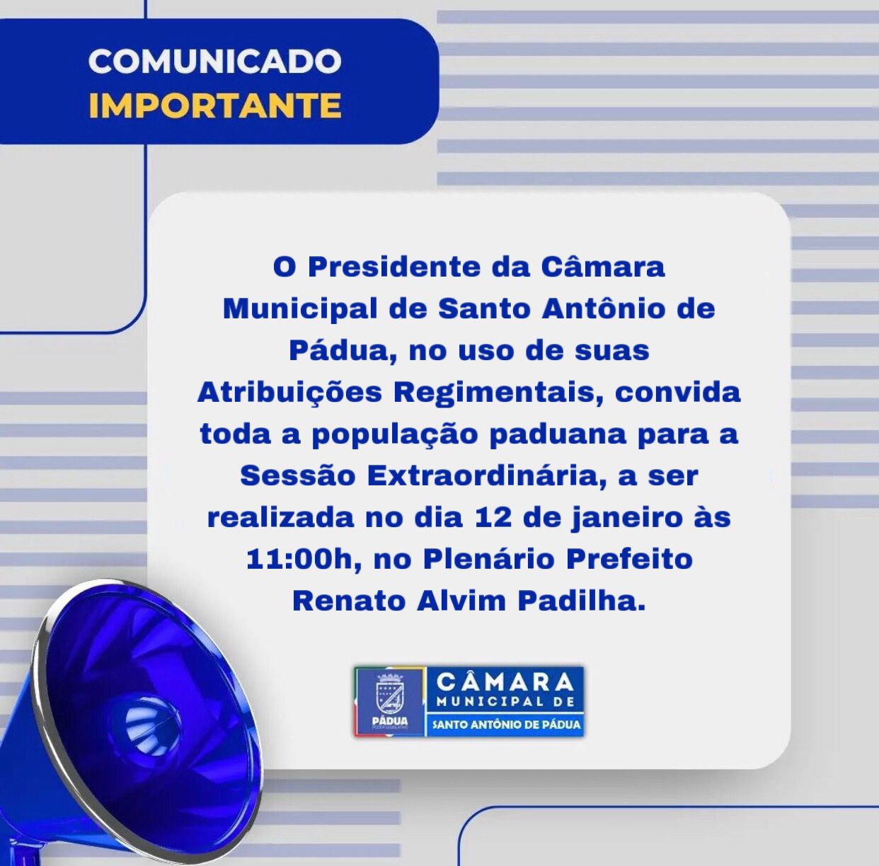 Sessão Extraordinária 12 de Janeiro de 2024 as 11:00h
